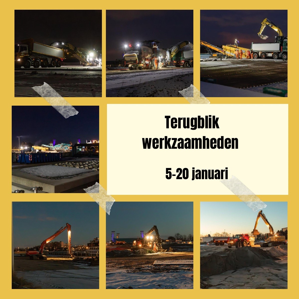 Op 5 januari gingen de werkzaamheden weer van start. Op het middenterrein werd afgelopen weken hard gewerkt aan het verwijderen van de asfaltverharding. Een terugblik in beeld.