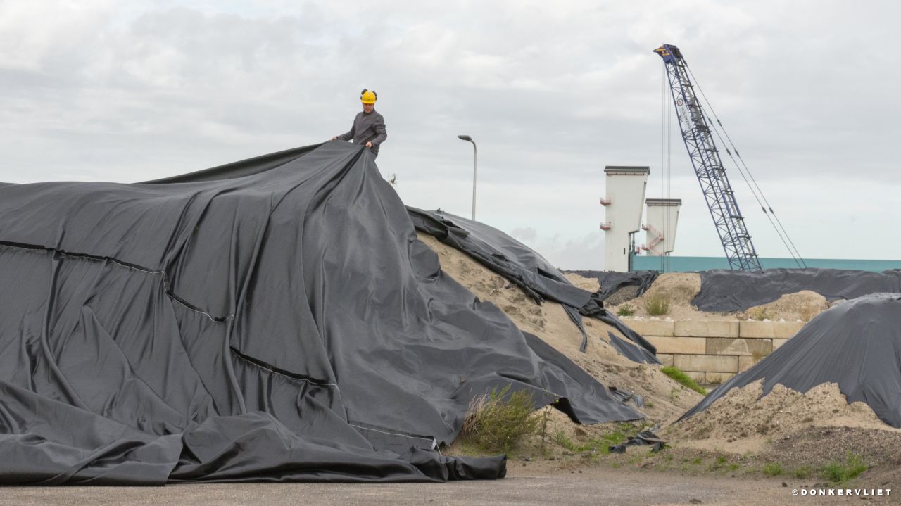 De bovenafdichting van het tijdelijk AVI-slakkendepot en de gronddepots heeft te lijden onder soms sterke windvlagen die over het EMK terrein razen. De bovenafdichting over de tijdelijke depots hebben wij deze zomer aangebracht om verwaaiing van het materiaal te voorkomen (en daarmee stofoverlast tegen te gaan).